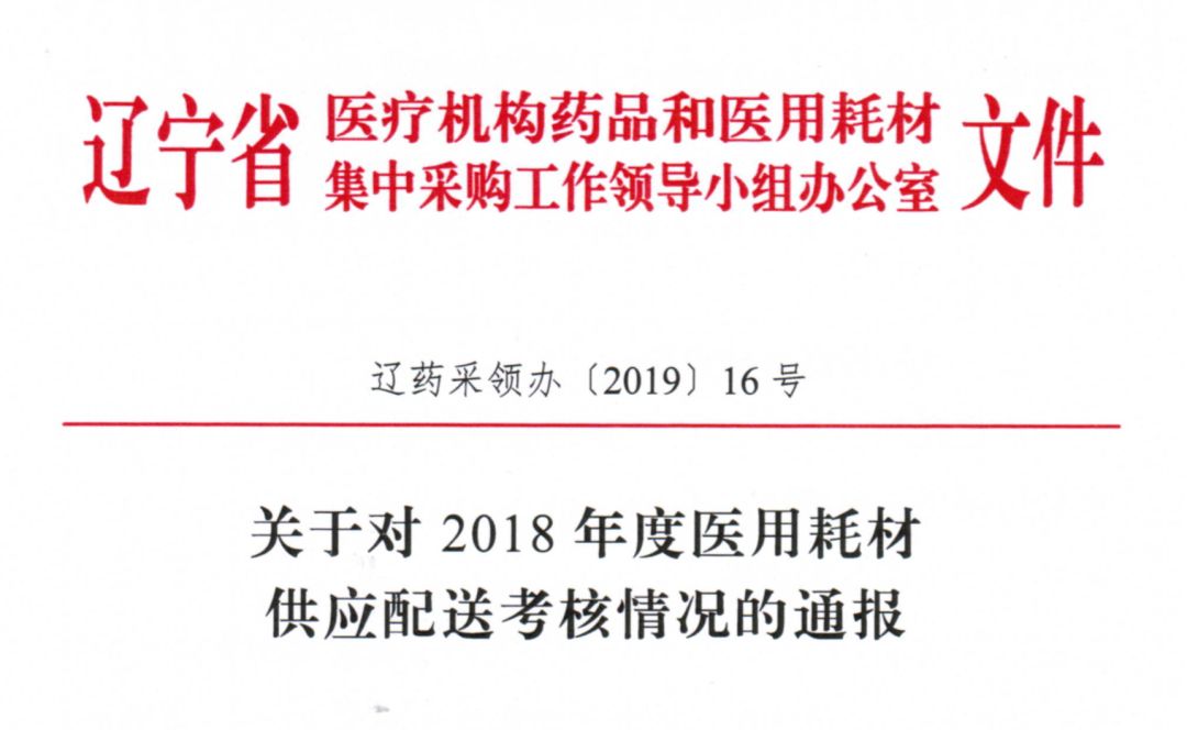 2月26日,辽宁省药品和医用耗材集中采购网发布《关于2018年度医用耗材供应配送情况的通报》(下称《通报》),对2018考核年度(2018年7月1日-12月31日)内该省的配送企业情况作出通报。